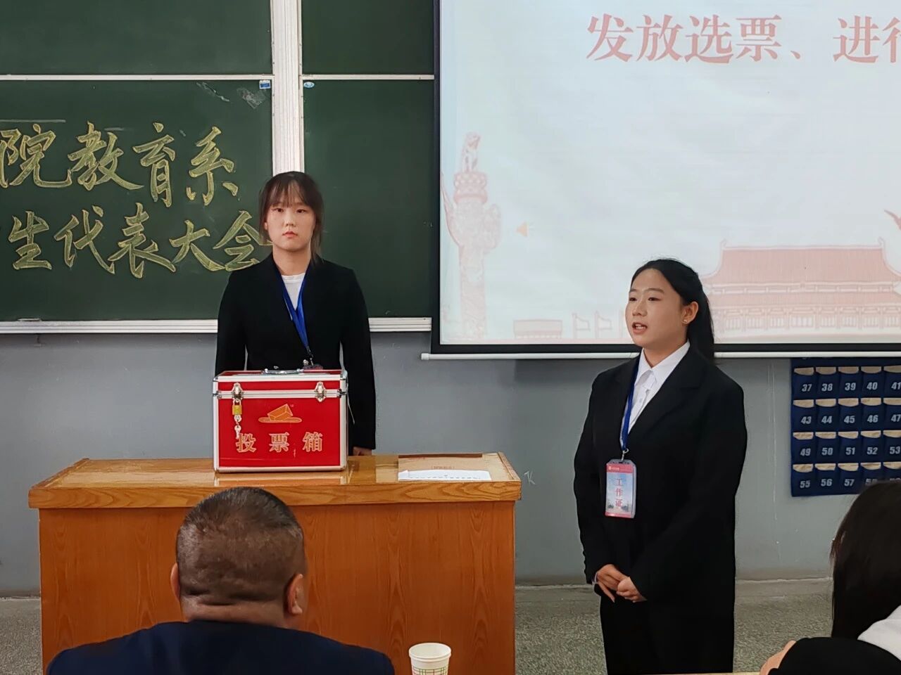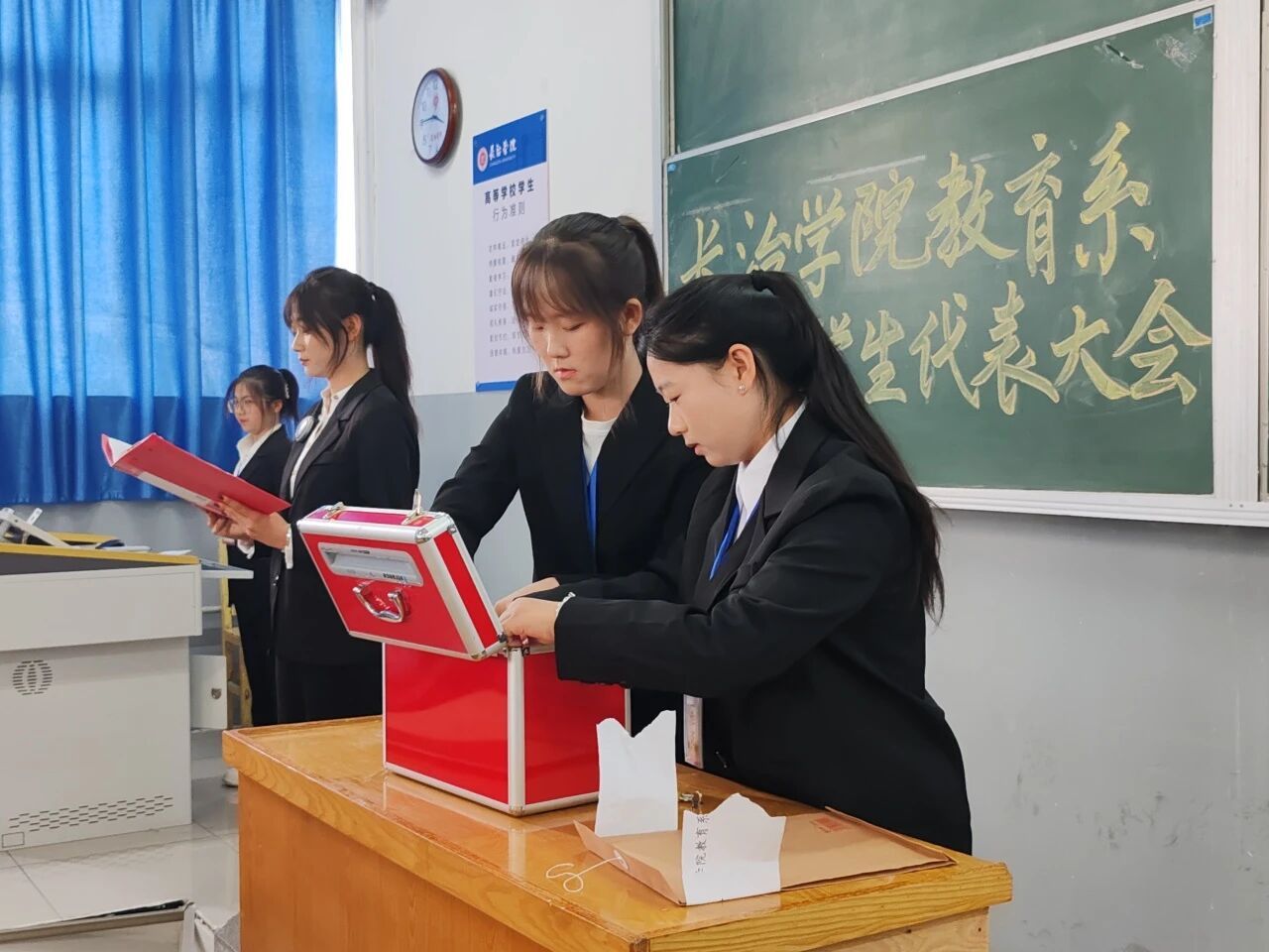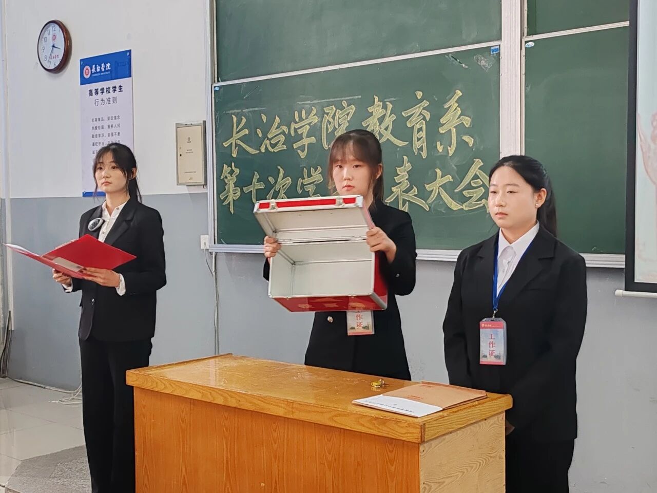 2025年10月14日下午,长治学院教育系第十次学生代表大会在2号教学楼104教室隆重召开。教育系党委副书记胡晓涛,团委书记卢彦伊、学生第一党支部书记李昂及各校级组织学生代表、各兄弟系部学生代表出席本次大会。教育系团委、学生会、新媒体成员及110余名学生代表参加此次会议。本次大会由学前教育2302班薛美玲主持。