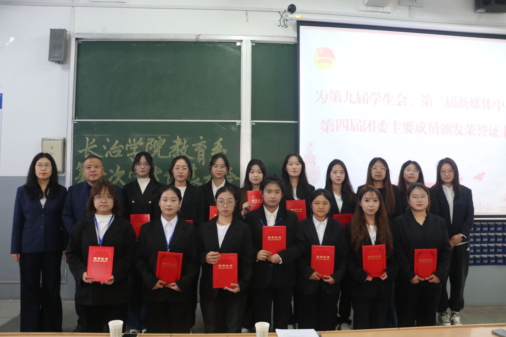 胡晓涛老师为长治学院教育系第十届学生分会执行主席、第三届新媒体中心主任及第四届新增团委委员颁发证书。