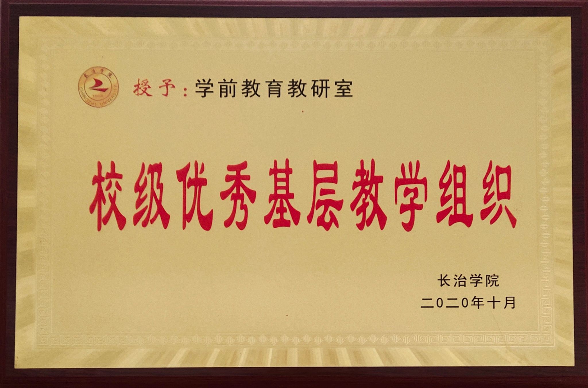 在2019年11月3日召开的长治学院第八次教学工作会议上,我系学前教育教研室荣获“校级优秀基层教学组织”,并被推荐为2019年山西省高等学校示范基层教学组织,这既是对已有工作在肯定,更是对未来工作在激励。教育系学前教育教研室一定会再接再厉,进一步树立新目标,实现新突破,在以后的工作中再创佳绩。