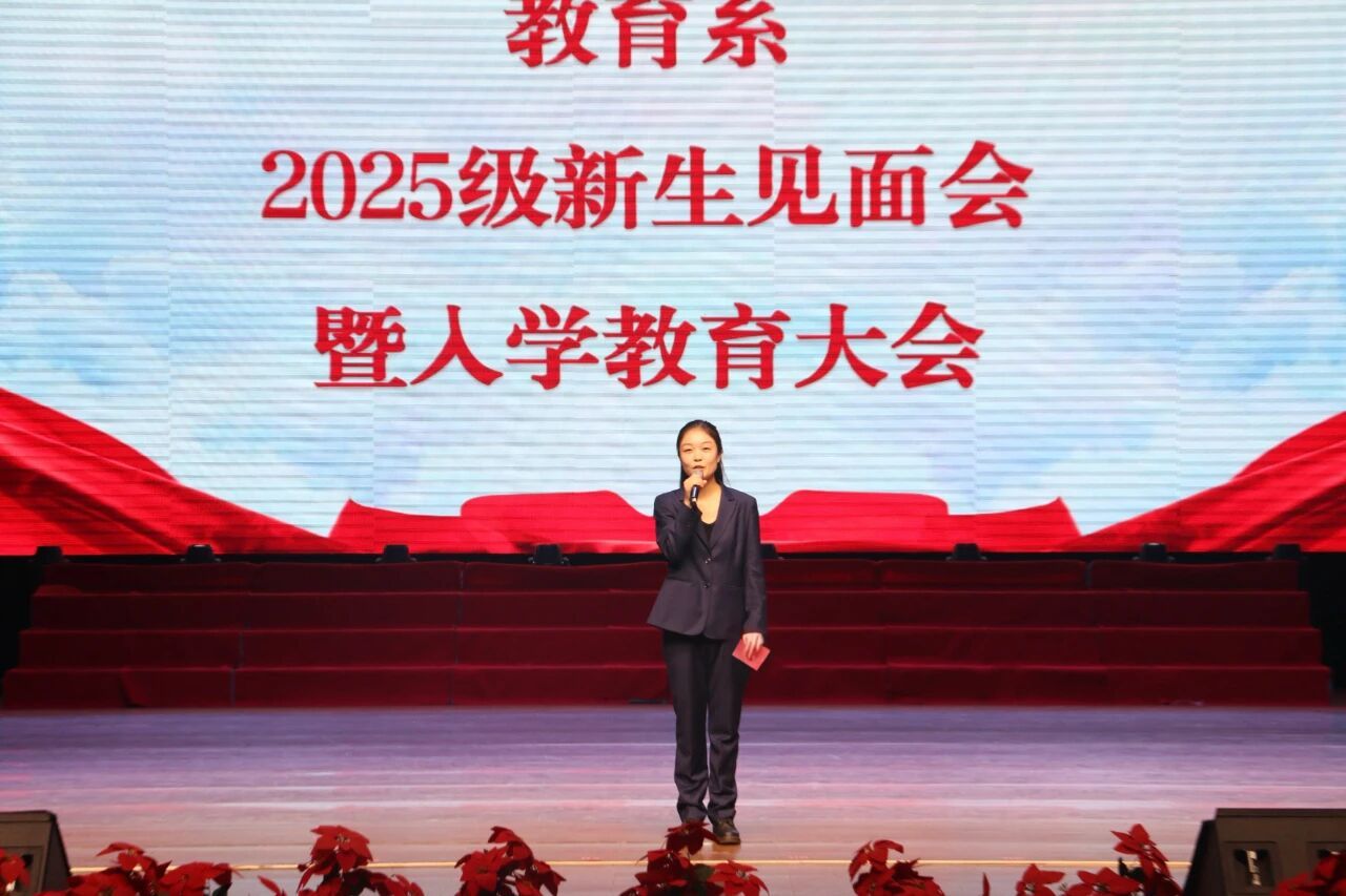 全体师生奏唱《中华人民共和国国歌》,教育系2025级新生见面会正式拉开帷幕!